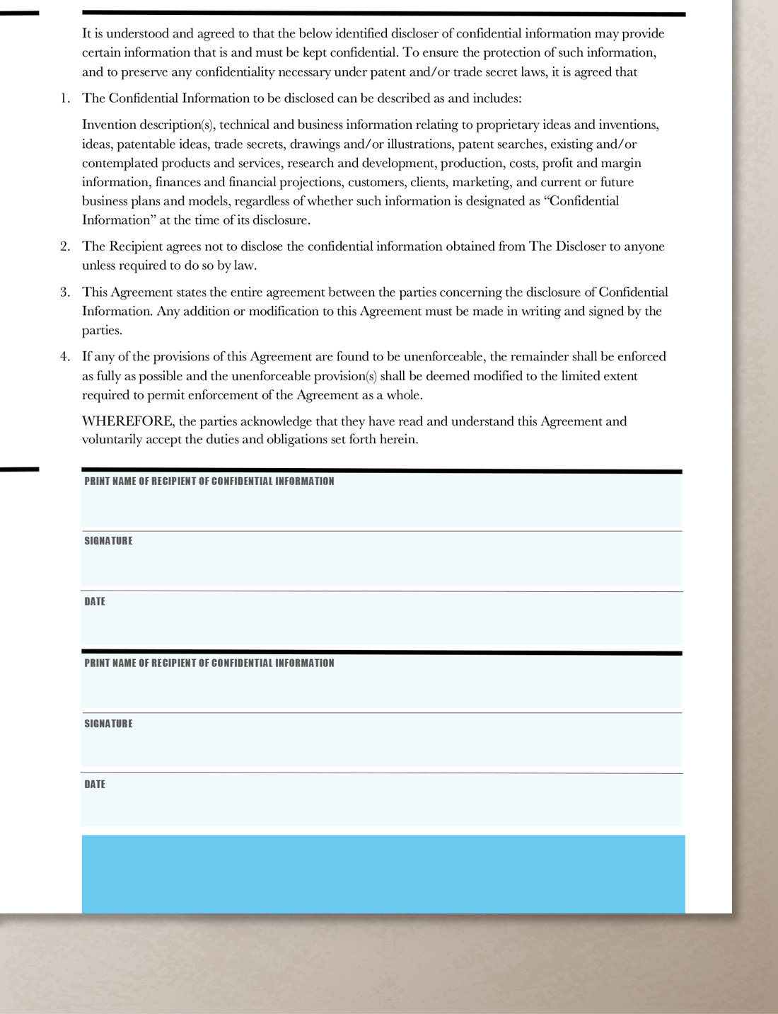 – MS Word file (letter size & A4) Confidentiality Agreement Form