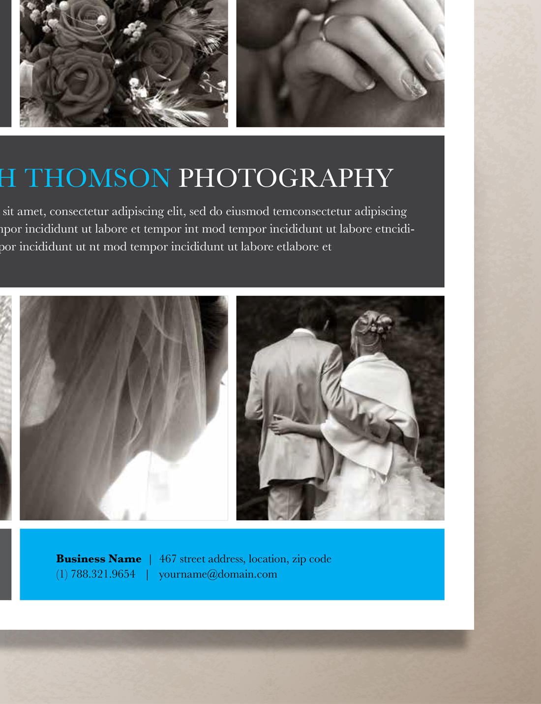 Clean and simple layout for all your information needs. Perfect for PDF exporting and printing to your customers. This template comes in both letter size and A4 format. The background and font colours are adjustable to meet your current company colours. All fonts used are already included in your base MAC or WINDOWS operating system. Please note that the photos are not included.
