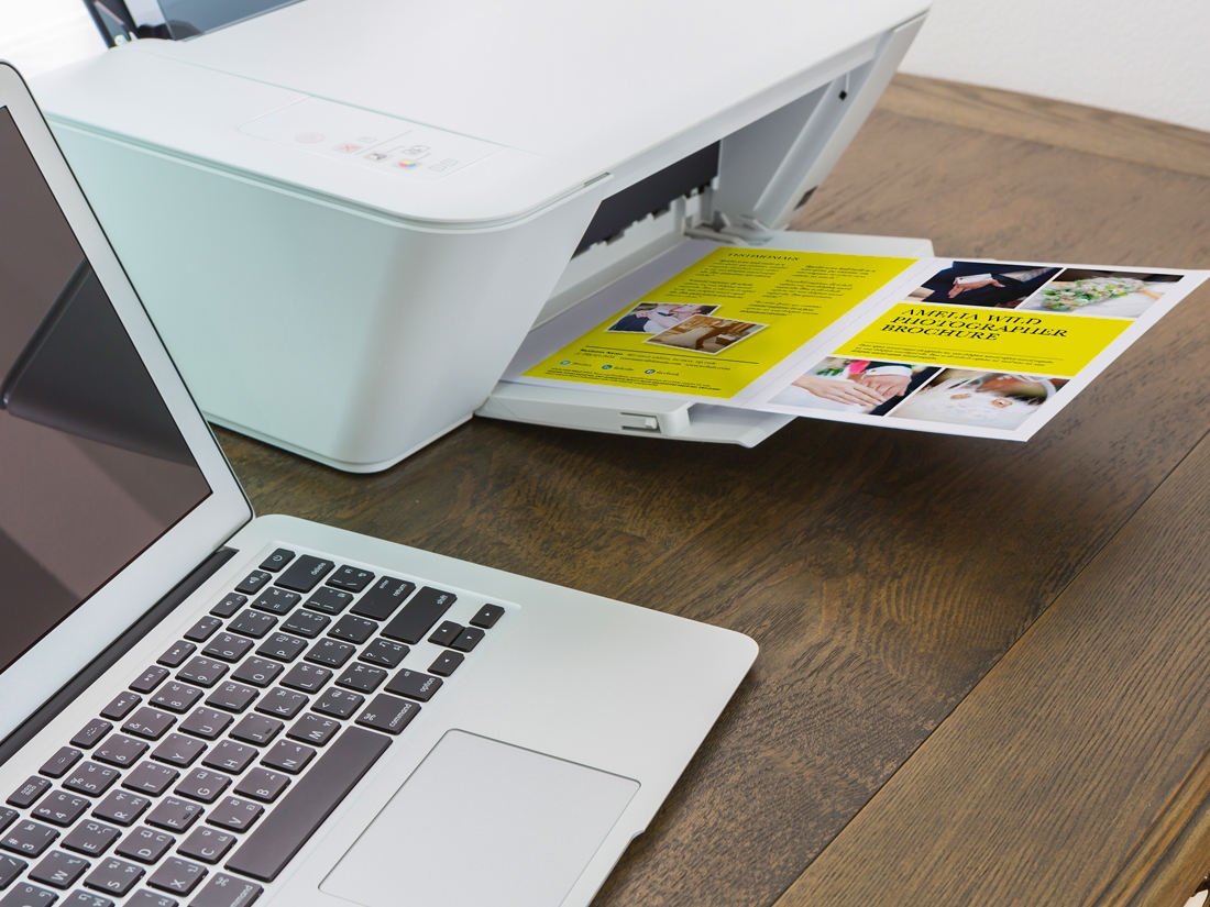 We recommend printing on an 8.5” x 11” bright white paper stock that is optimized to print on your type (laser/inkjet) printer. Print the brochure on 2 sides and fold, simple!